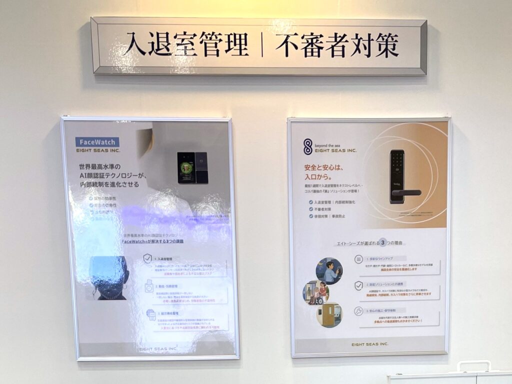 AI顔認証テクノロジーのFaceWatchや、電子錠のロックマンを中心にデモンストレーションを行いました。