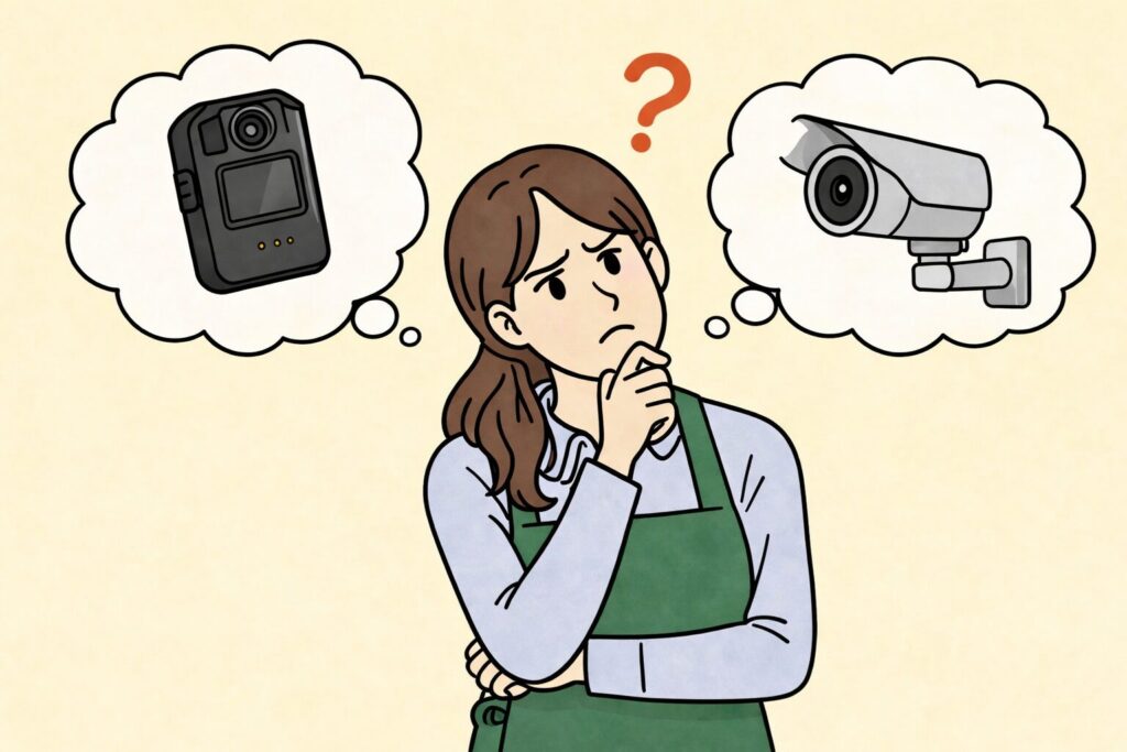 前回のコラムでは、カスハラ対策における「抑止」の重要性をお伝えしました。「記録されている」という事実が、不当なクレームや威圧的な言動を未然に防ぐ——その手段として代表的なのが、防犯カメラとボディカメラです。どちらも「映像を記録する」機器で...